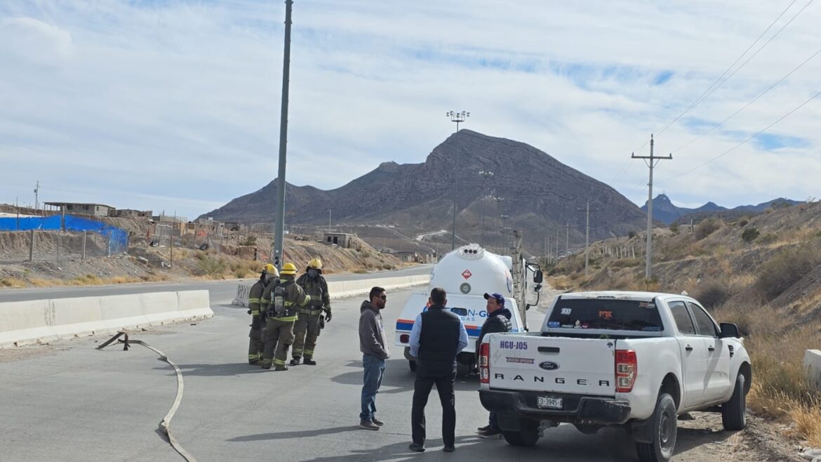 Agentes de la Coordinación de Seguridad Vial cerraron la circulación vehicular en el Camino Real, a la altura de la calle Navojoa, en ambos sentidos, debido a que una pipa de gas presentó una fuga.