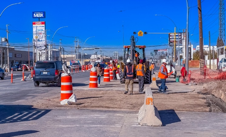 La Junta de Agua y Saneamiento de Juárez (J+) en coordinación con personal de la Comisión Federal de Electricidad (CFE) determinó, como medida de seguridad, retirar la energía eléctrica del cableado aéreo con el fin de proteger la integridad de los trabajadores que realizan labores de reposición del Colector Viñedo en el bulevar Gómez Morín.