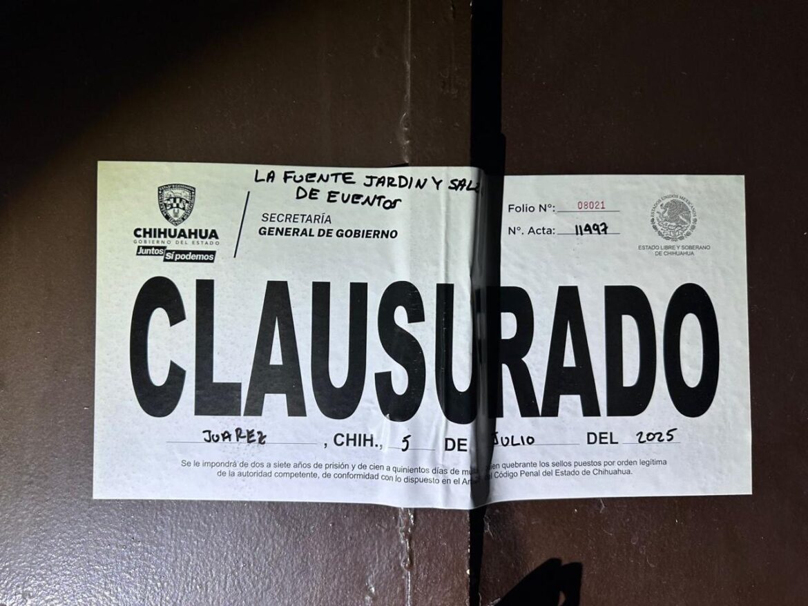 - Salón de eventos “La Fuente Jardín” por operar sin permiso