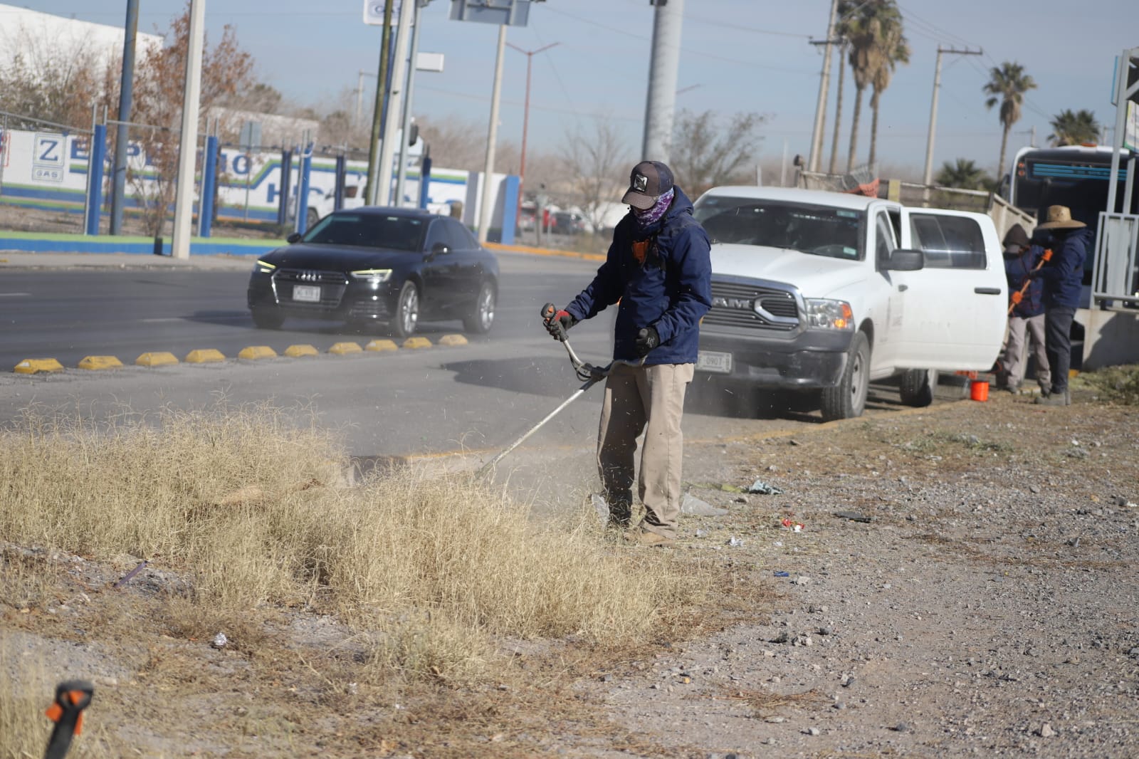 Cuadrillas de la Dirección de Parques y Jardines llevaron a cabo labores de mantenimiento en el camellóm central de la Panamericana, como parte de las acciones permanentes para conservar en buenas condiciones los espacios públicos de esta frontera.
