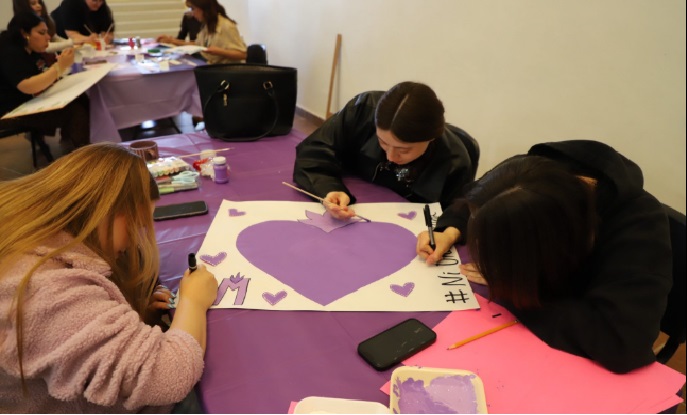También agradeció el apoyo de la UACJ, que al abrir los espacios enseña a la comunidad y apoya a los colectivos. En el taller se brindaron datos sobre el objetivo del 8M y se guio en las posibilidades de iconografía a utilizar en los carteles, como el color morado, el pañuelo verde, el fuego y el símbolo de Venus.