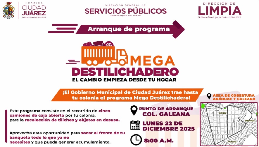 El área de cobertura será algunos sectores de las colonias Galeana y Anáhuac, donde se realizará el recorrido de cinco camiones de caja abierta destinados a la recolección de tiliches y objetos en desuso.