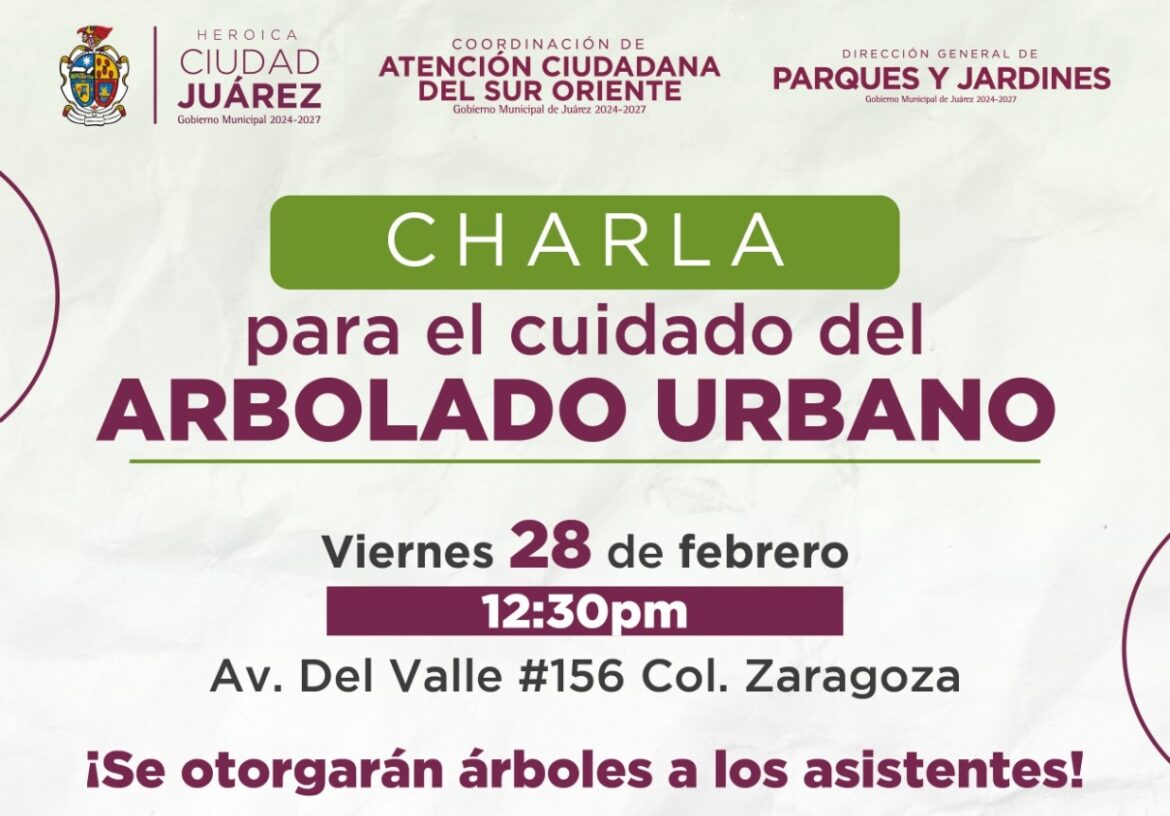 La Coordinación de Atención Ciudadana del Suroriente, coordinada con la Dirección de Parques y Jardines, llevarán a cabo la charla para el cuidado del arbolado urbano.