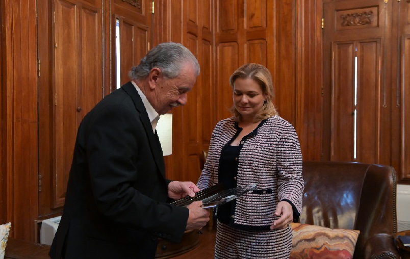 En reunión con el líder empresarial celebrada en Palacio de Gobierno, la mandataria dijo que este reconocimiento representa un impulso para trabajar de manera coordinada, a favor del desarrollo energético del estado.