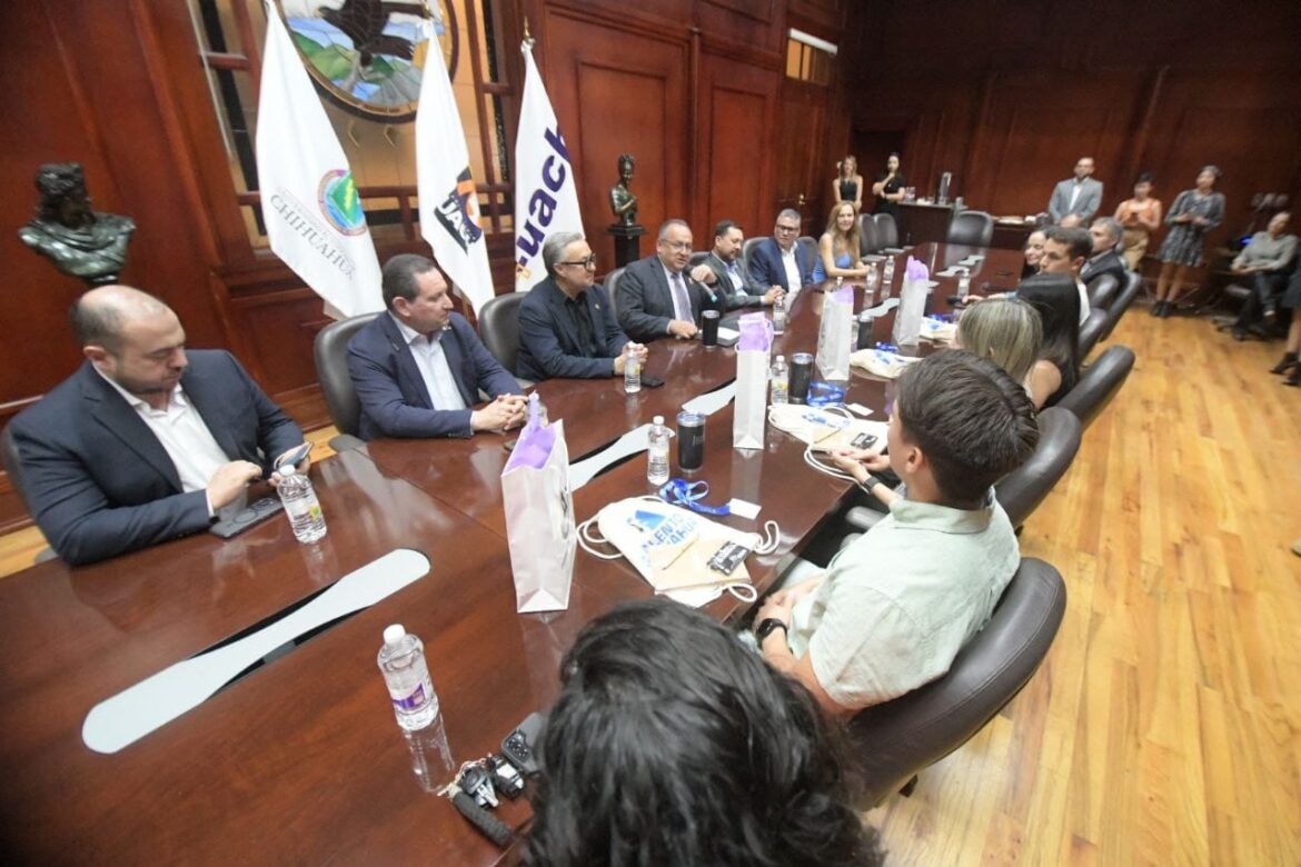Durante el acto, el Rector de la UACH, Mtro. Luis Alfonso Rivera Campos, destacó que este tipo de oportunidades llegan en un momento clave para el desarrollo profesional de los estudiantes y celebró el perfil competitivo que proyectan las nuevas generaciones: “Queremos jóvenes con sueños, que aprovechen al máximo estas experiencias. Lleven en alto el nombre de la UACH y del estado”, expresó. Asimismo, agradeció a la SIDE, al Secretario Ulises Fernández Hernández y a la Gobernadora Maru Campos Galván, por impulsar iniciativas que fortalecen la formación universitaria con visión global.