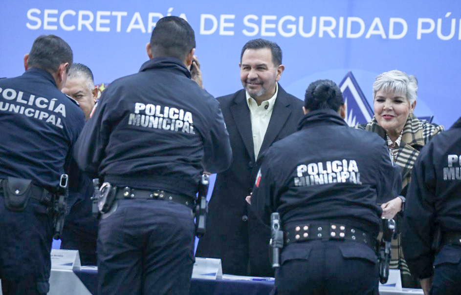 El acto estuvo encabezado por el presidente municipal, Cruz Pérez Cuéllar, y el secretario de seguridad pública municipal, César Omar Muñoz Morales, quienes reconocieron la labor de las y los policías condecorados, destacando la importancia del trabajo que realizan para el fortalecimiento de la seguridad en la ciudad.