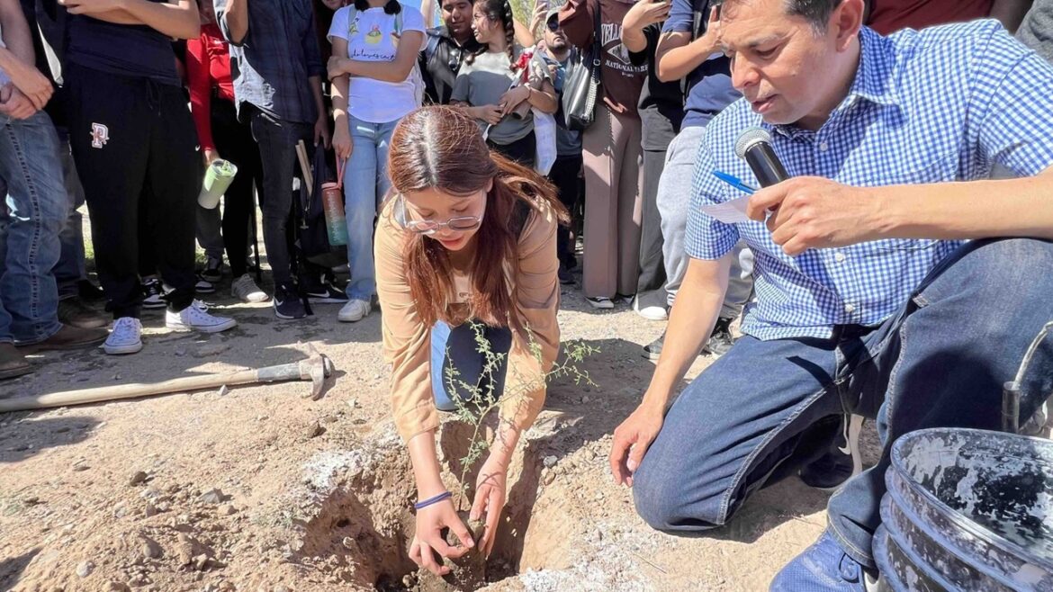 Entre risas, camaradería y un compromiso que trasciende lo académico, 200 alumnos se unieron para sembrar huizaches y mezquites, con la esperanza de ver en unos años un campus reverdecido en medio del desierto juarense.