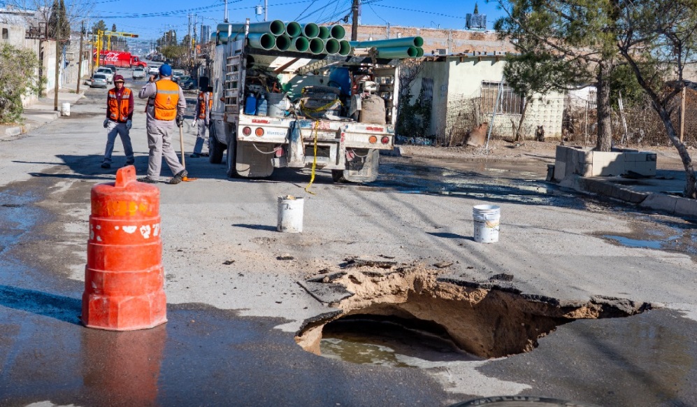 La Junta de Agua y Saneamiento de Juárez, reforzó los trabajos de reparación en hundimientos registrados en la ciudad, derivados de las lluvias extraordinarias del pasado fin de semana. Hasta la mañana de este martes, se han cuantificado 16 oquedades en distintas zonas, que ya se encuentran en proceso de atención.