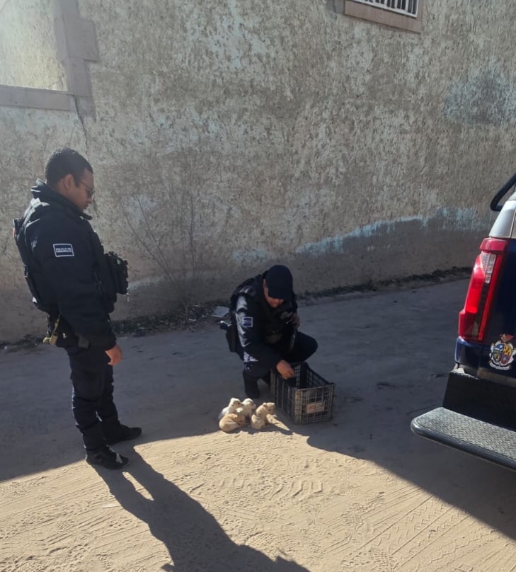 Resguardan Policías Municipales a cinco cachorros abandonados en la vía pública