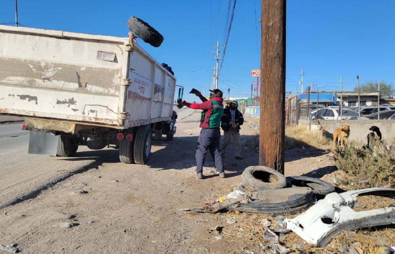 Más de 300 llantas, en su mayoría de tractocamión, fueron retiradas de los accesos a la ciudad durante una jornada de limpieza realizada por cuadrillas de la Dirección de Limpia, informó el titular de la dependencia, Gibran Solís.