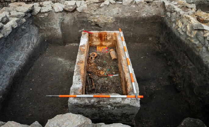 Libre de saqueadores y sellado por siglos, el sarcófago fue encontrado con su tapa de piedra aún asegurada por abrazaderas metálicas y plomo fundido. Al levantarla, los investigadores revelaron un esqueleto completo rodeado de numerosos artefactos.