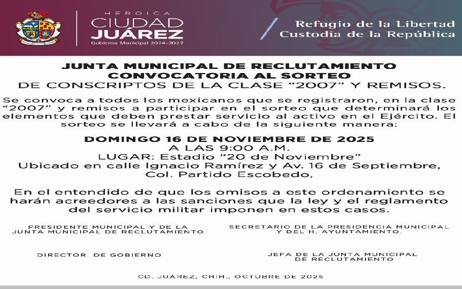“El sorteo se llevará a cabo el próximo domingo 16 de noviembre, a las 9:00 de la mañana, en el Estadio 20 de Noviembre, ubicado en la calle Ignacio Ramírez y 16 de Septiembre en la colonia Partido Escobedo”, explicó el funcionario.