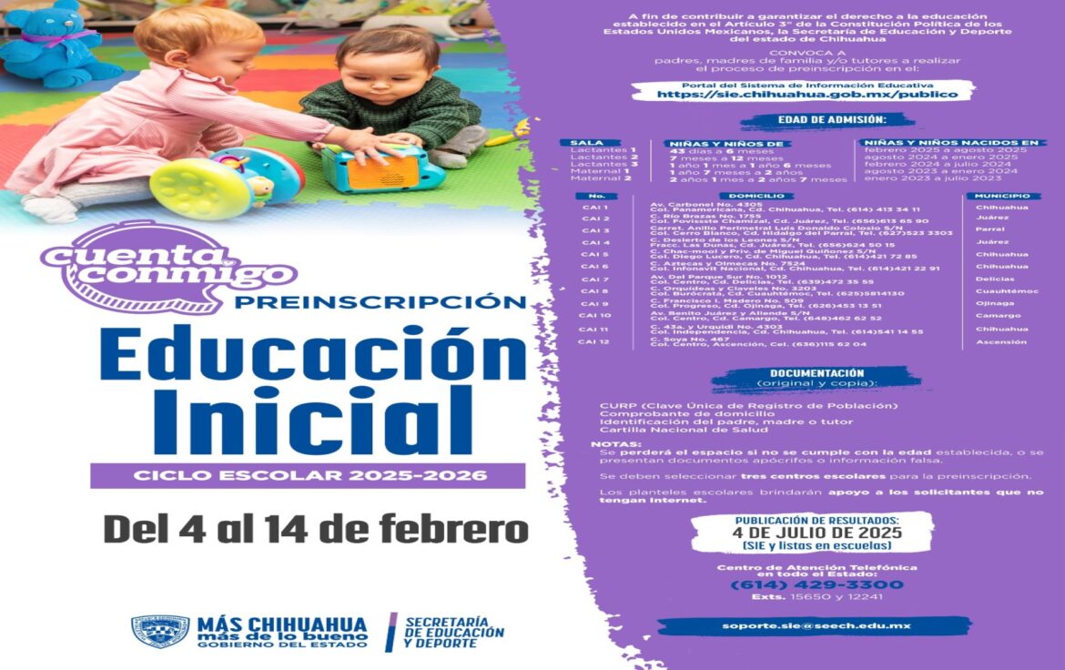 La Secretaría de Educación y Deporte (SEyD), informó que del 4 al 14 de febrero se llevará a cabo el proceso de preinscripción de alumnas y alumnos de nuevo ingreso a los niveles Inicial, Preescolar, Primaria y Secundaria, para el ciclo escolar 2025-2026.