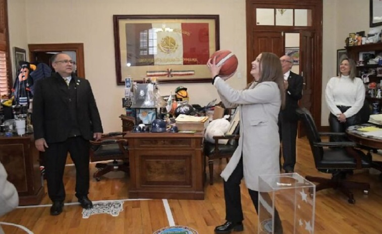 En la referida red social se hicieron públicas diversas fotografías, en donde se observa a los invitados del rector «tirar bola» a la canasta, en la mini cancha de básquet que el titular del Alma Mater instaló en su despacho privado dentro del edificio histórico, al inició de su gestión.